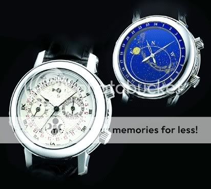 The "Ref. 5002 P Sky Moon Tourbillon" wristwatch with a double dial is considered the most complicated wristwatch ever produced by the renowned Swiss watchmaker. Only two such watches are made every year, one in platinum and one in rose gold. The watch, made in 2003, was bought by an Asian private buyer at the Sotheby's auction.